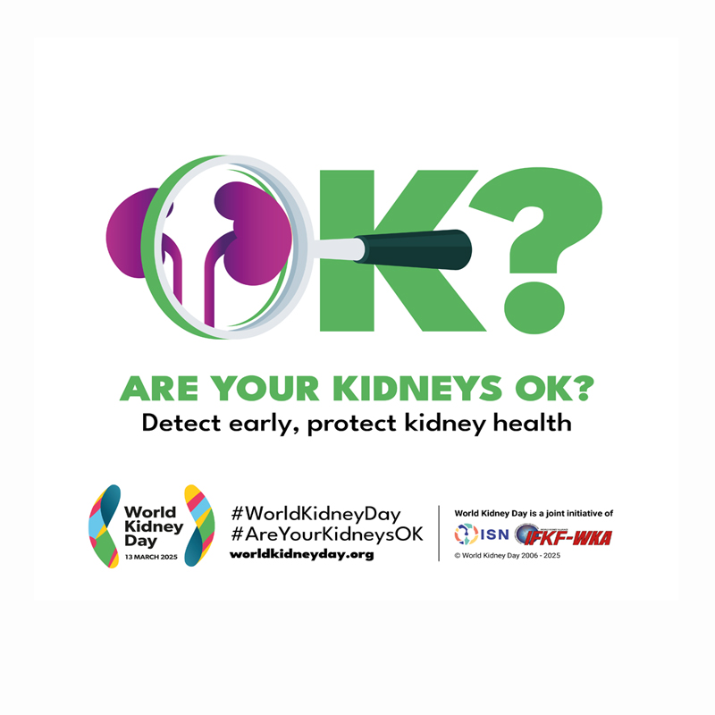 Here you can find the official image for the WKD 2025 campaign. It is the graphic representation of our 2025 theme “Are Your Kidneys OK? Detect early protect kidney health“.